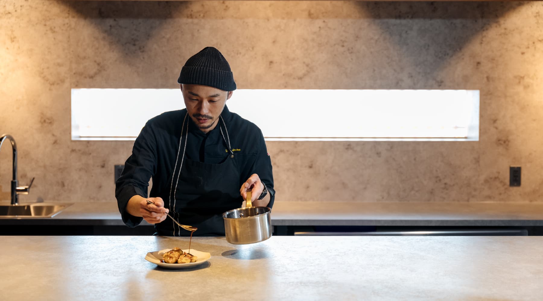 大阪のフレンチレストランで腕を磨き、その後、地元島根の老舗旅館で統括料理長を務める。2025年の御厨オープンに伴い、料理長に就任。フレンチの料理人でありながら、出汁マイスターの資格を持つ、独自の経歴が強み。