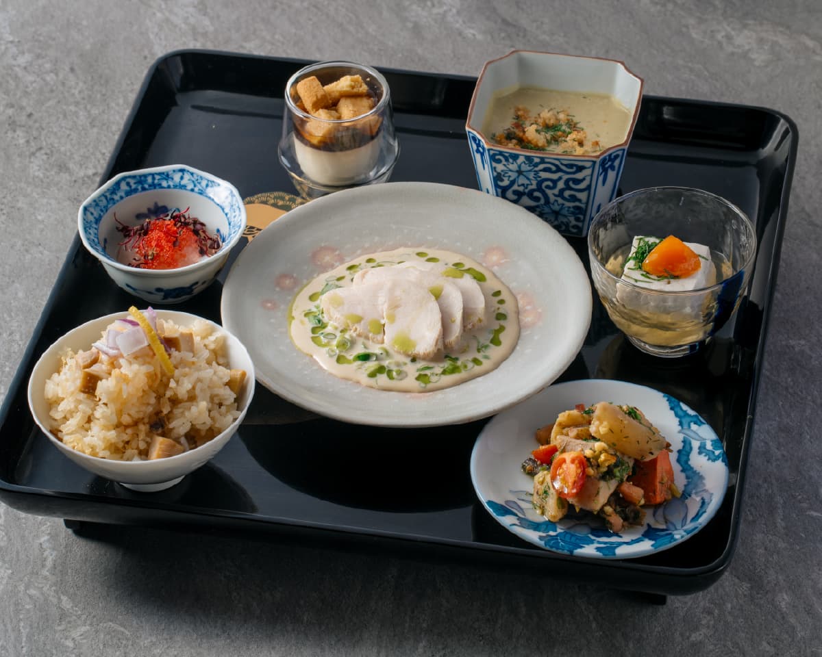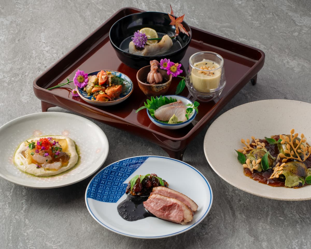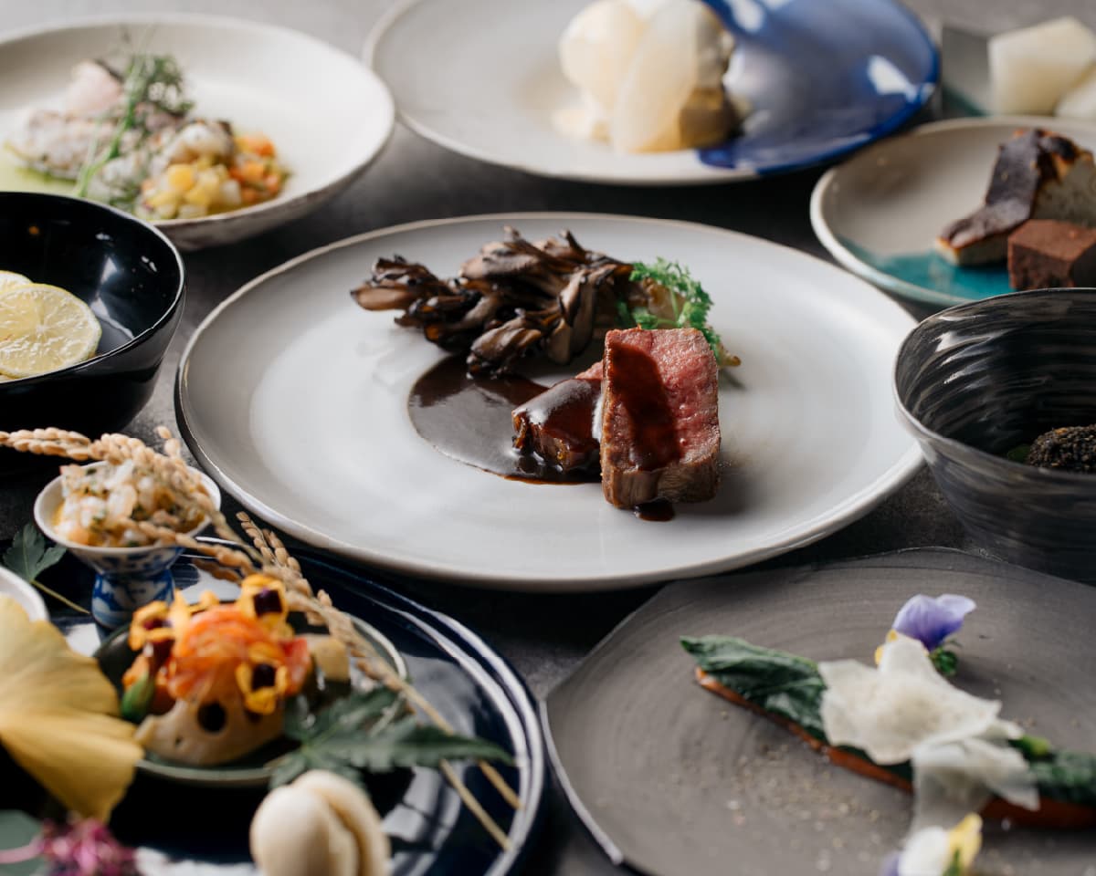 水は“和”、光は“フレンチ”の美しさ・軽やかさを表現。出汁と旨み、そして大山野菜とフレンチの技法が織りなすフルコース。