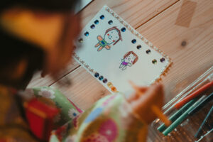 お子様には内緒でパパとママへの絵を描いてもらい、晴れ姿での対面と同時にプレゼント。