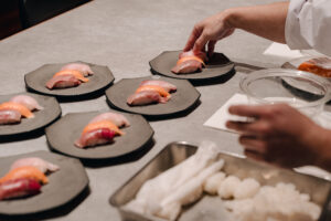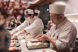 目の前で引く出汁の香りと、握りたての寿司、揚げたての天ぷら。